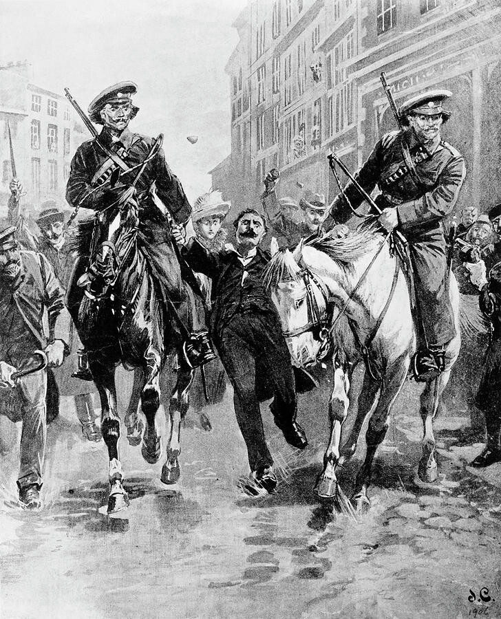 Через кухню к нам наверх появились: пристав, околоточный, городовые и какие-то чуйки. Драгуны, верхом, заняли часть переулка вплоть до нашего парадного крыльца. Пристав резко обратился к Онисиму Борисовичу: