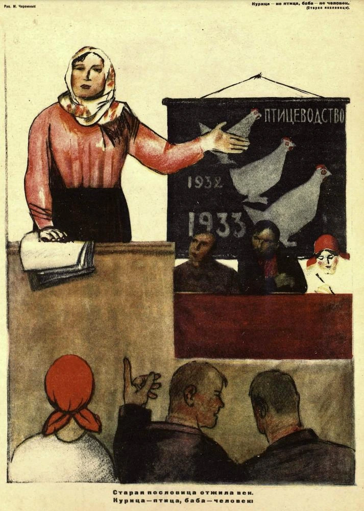 Рис. А. Топикова. «Крокодил», 1929, № 47.Курица — не птица, баба — не человек. (Старая пословица.)
