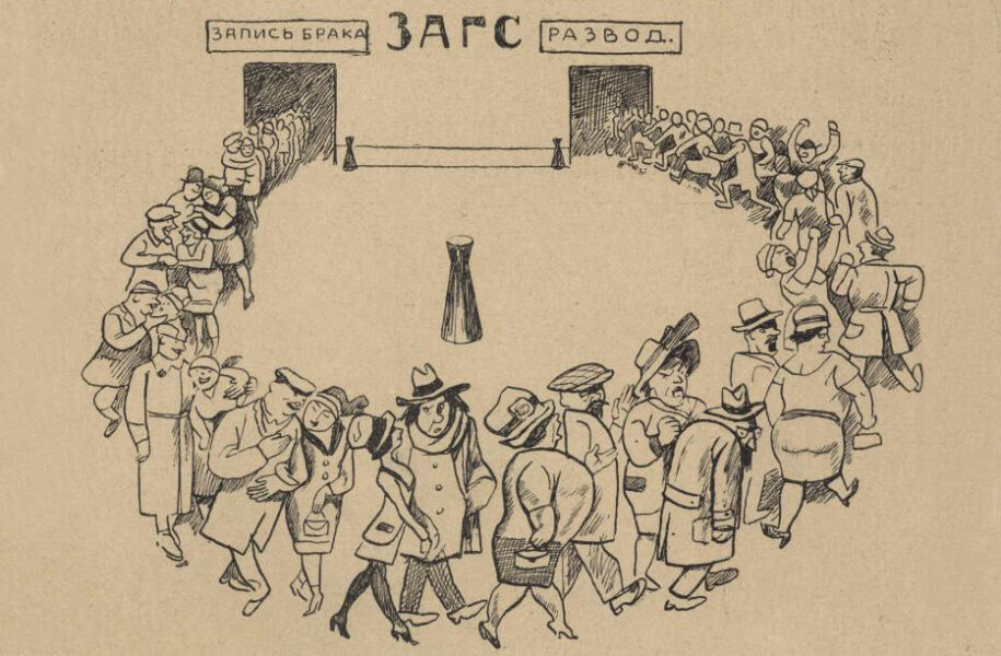 Советская власть считала «старые» институты семьи и брака инструментами порабощения, особенно женщин, и уже в декабре 1917 года кардинальным образом их реформировала. Во-первых, официально признается теперь только гражданский брак, а церковный, «наряду с обязательным гражданским, является частным делом брачующихся». При этом вступить в брак теперь очень просто — действовавшие при прежнем строе религиозные и другие ограничения больше не имеют силы. Брачующиеся должны лишь достичь брачного возраста (по общему правилу 18 лет для мужчин и 16 для женщин) и не быть близкими родственниками, уже состоящими в браке или недееспособными. Во-вторых, кардинально упростилась процедура расторжения брака: достаточно было письменного или даже устного заявления обоих супругов или одного из них (раньше расторжение брака было возможно только по очень узкому перечню оснований). Наконец, в 1920 году РСФСР стала первой в мире страной, легализовавшей аборты, причем до 1924 года для этого не было вообще никаких ограничений.