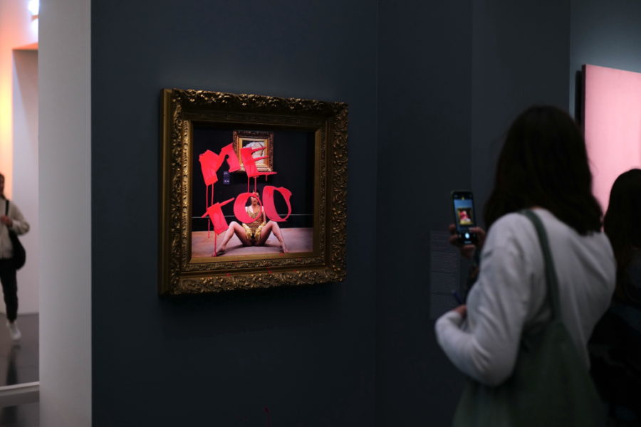 Как сообщается, две участницы акции оставили надпись «MeToo» на картине французского художника Гюстава Курбе 19-го века, изображающей женскую вульву. Картина была написана в 1866 году и получила название «Происхождение мира». Перед тем, как женщины были задержаны охранниками, они также выкрикивали «MeToo». Предположительно, третья перформансистка похитила с выставки еще одну картину — красную вышивку на белой ткани французской художницы Аннет Мессагер, носящую название «Я думаю, следовательно, я отстой».