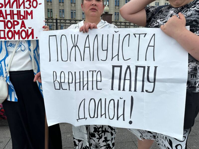 К женам и матерям мобилизованных, которые устроили пикетирование напротив здания Минобороны, вышел генерал-полковник Борисенко А. А. Ранее женщинам пообещали, что если они свернут плакаты, с ними поговорит представитель ведомства. В разговоре с женщинами Борисенко заявил, что не сможет вернуть их мужей домой с войны, и добавил, что «против России ведется агрессия со стороны 55 государств», а его сын в настоящее время сам находится на фронте.