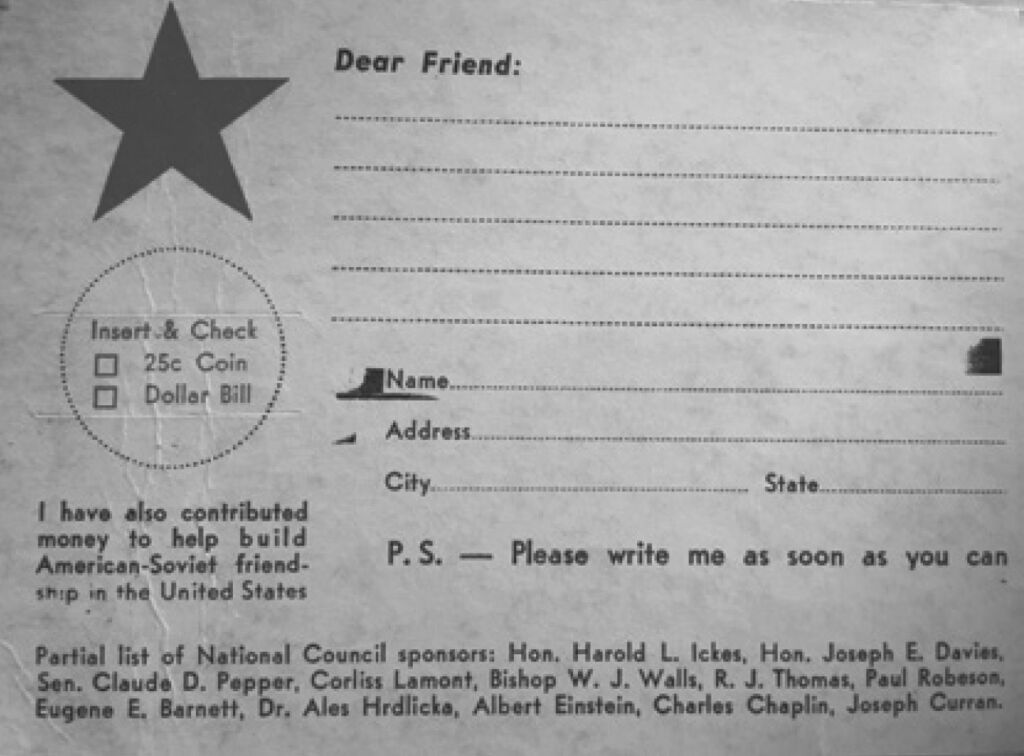Почтовая карточка Национального комитета американо-советской дружбы. Источник: Dear Unknown Friend: the Remarkable Correspondence between American and Soviet Women, Harvard University Press, 2024